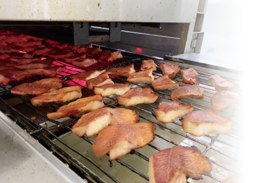 赤魚は、遠火の強火で香ばしく、近火で中までふっくらと、遠赤外線と近赤外線を組み合わせて直火で焼き上げ。
